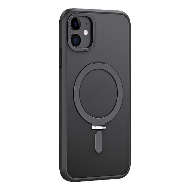 For iPhone 11 Skin Feel MagSafe Shockproof Phone Case with Holder(Black)