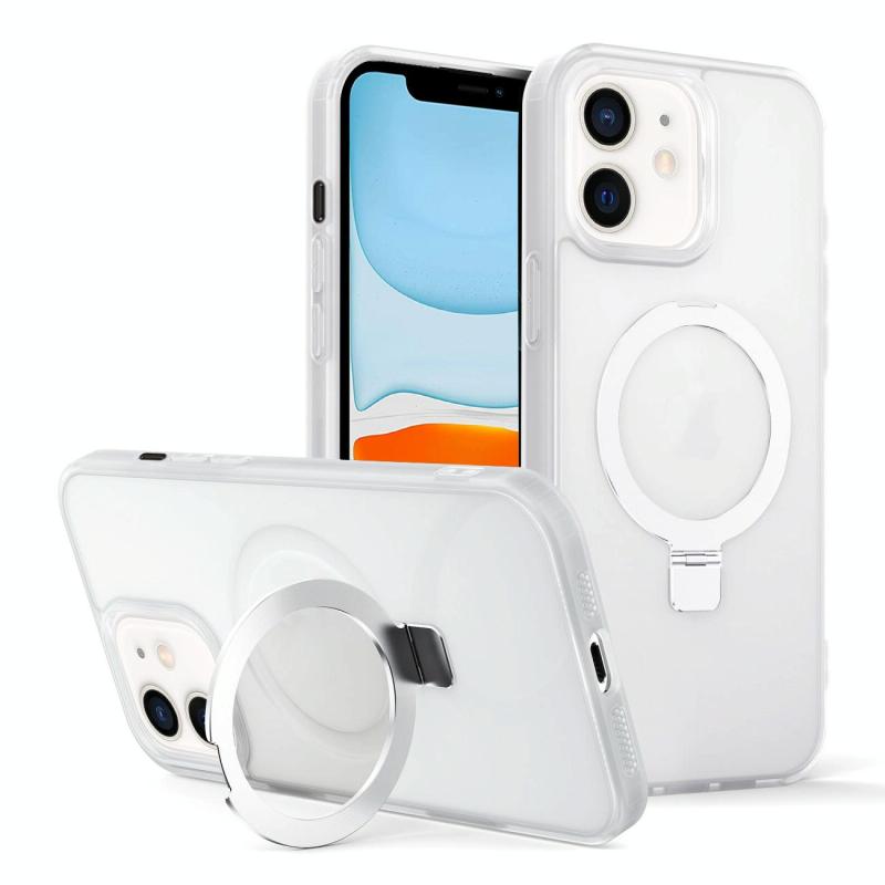 For iPhone 11 Skin-feel Ring MagSafe Holder Phone Case(Transparent White)