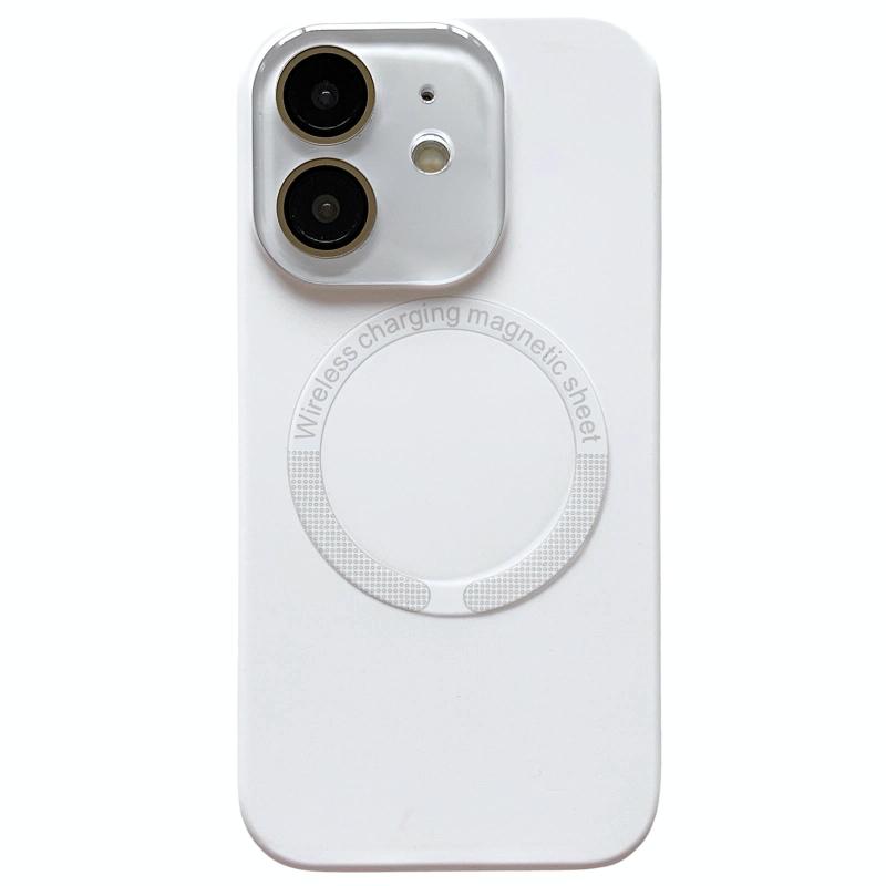 For iPhone 11 Small Window Acrylic Glass Lens MagSafe Silicone Phone Case(White)