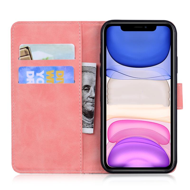 For iPhone 11 Tiger Embossing Pattern Horizontal Flip Leather Case with Holder & Card Slots & Wallet(Pink)