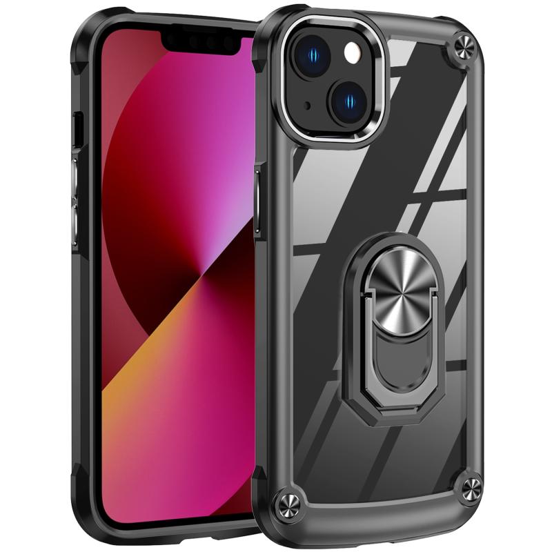 For iPhone 11 TPU + PC Lens Protection Phone Case with Ring Holder(Black)