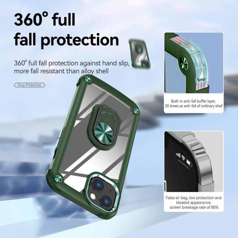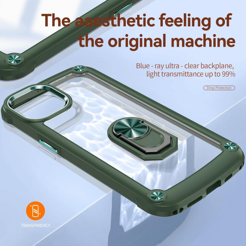 For iPhone 11 TPU + PC Lens Protection Phone Case with Ring Holder(Green)