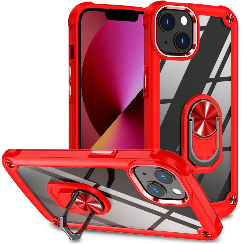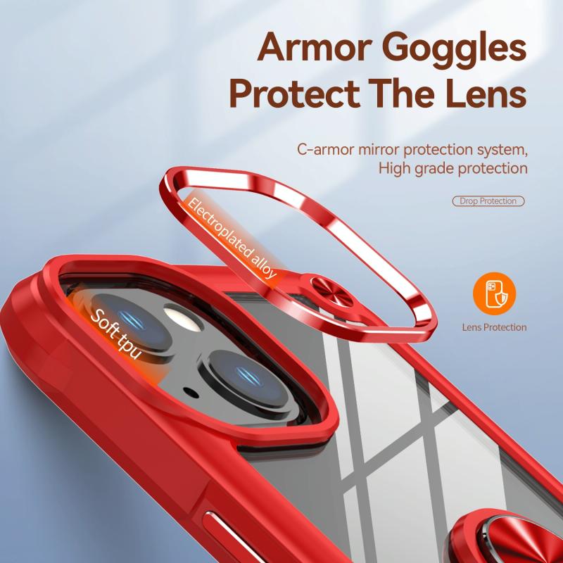 For iPhone 11 TPU + PC Lens Protection Phone Case with Ring Holder(Red)