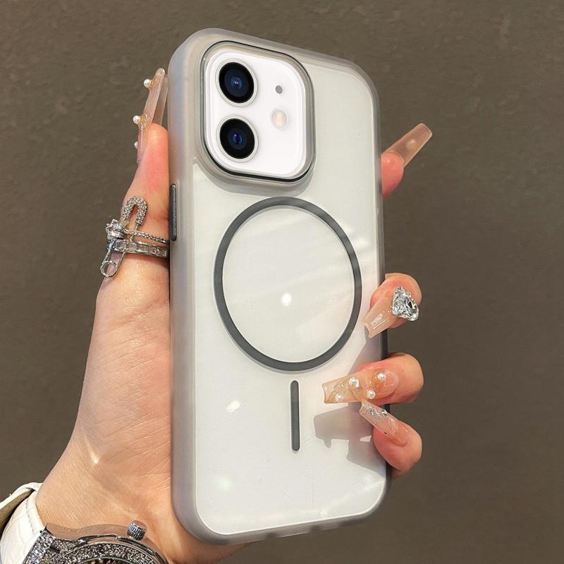 For iPhone 11 Translucent Armor MagSafe N52 Thin Circle Phone Case(Transparent Grey)