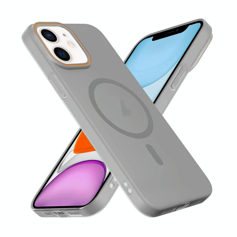 For iPhone 11 Translucent Frosted Skin PC MagSafe Phone Case(Grey)
