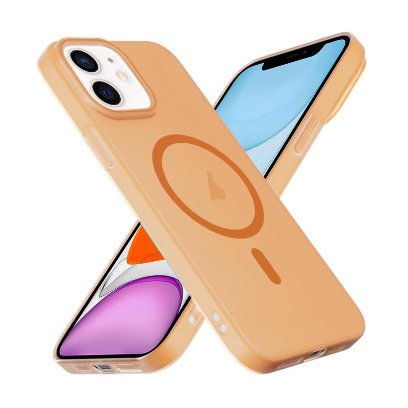 For iPhone 11 Translucent Frosted Skin PC MagSafe Phone Case(Orange)