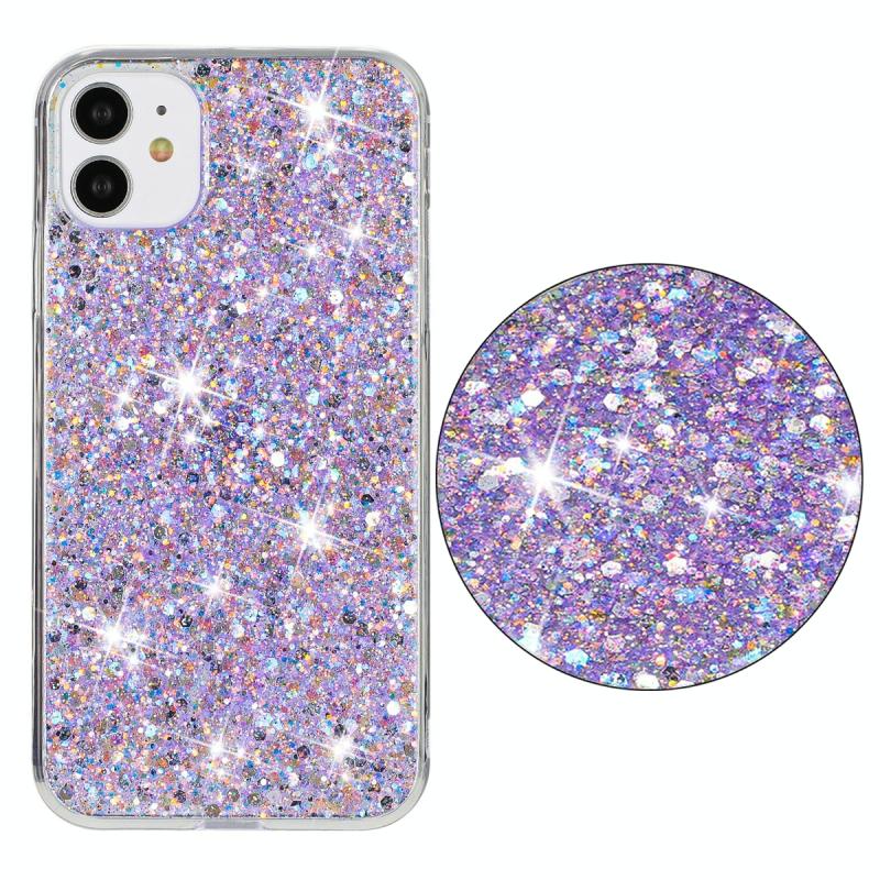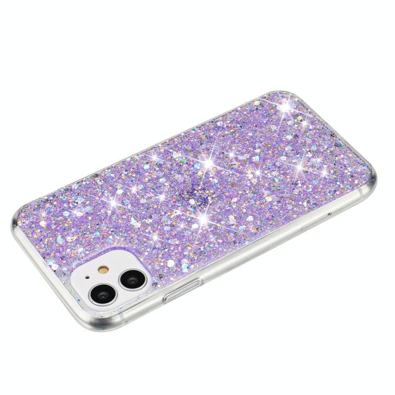 For iPhone 11 Transparent Frame Glitter Powder TPU Phone Case(Purple)
