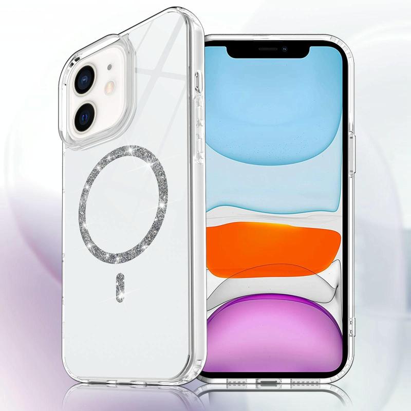 For iPhone 11 Transparent MagSafe Glitter Powder Acrylic Phone Case(White)