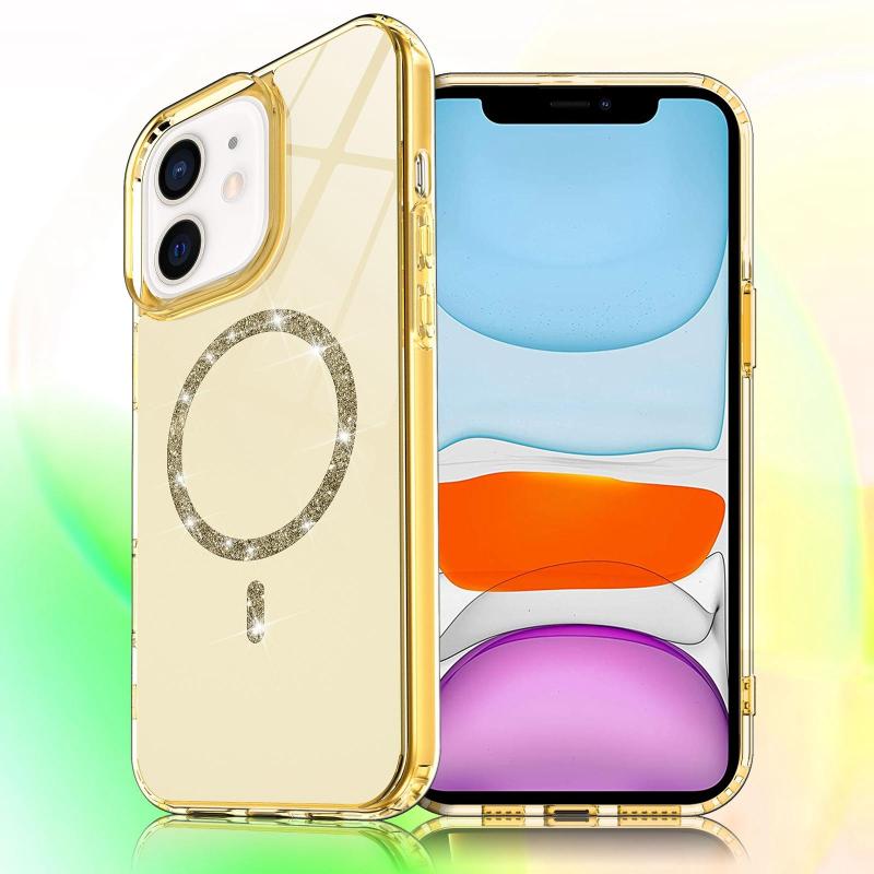 For iPhone 11 Transparent MagSafe Glitter Powder Acrylic Phone Case(Yellow)