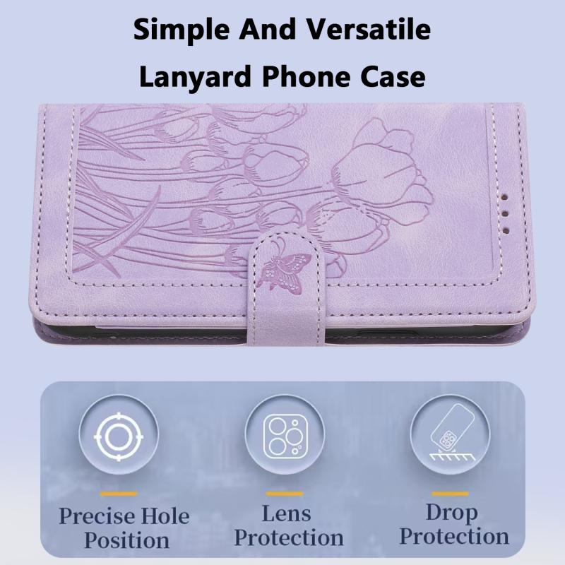 For iPhone 11 Tulips Embossed Leather Phone Case with Lanyard(Purple)