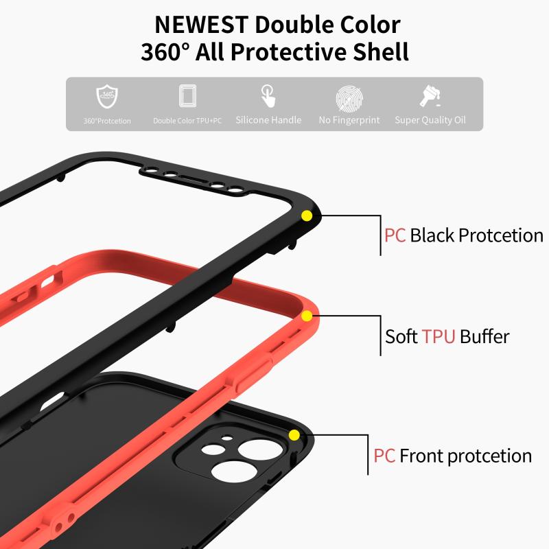 For iPhone 11 Two Color Full Protective 3-in-1 Phone Case(Black)