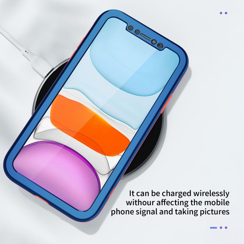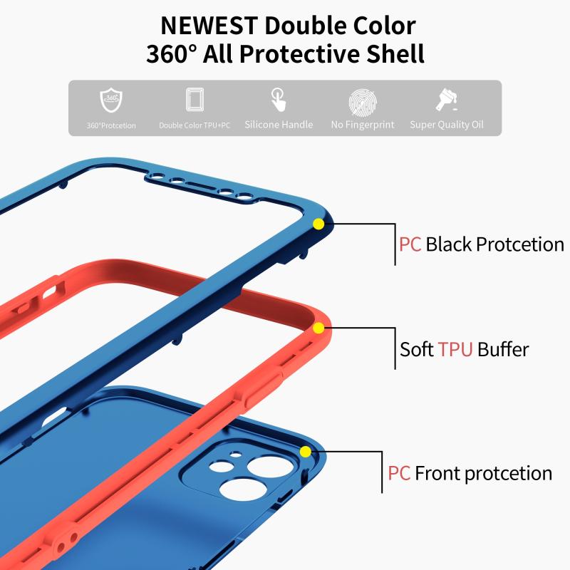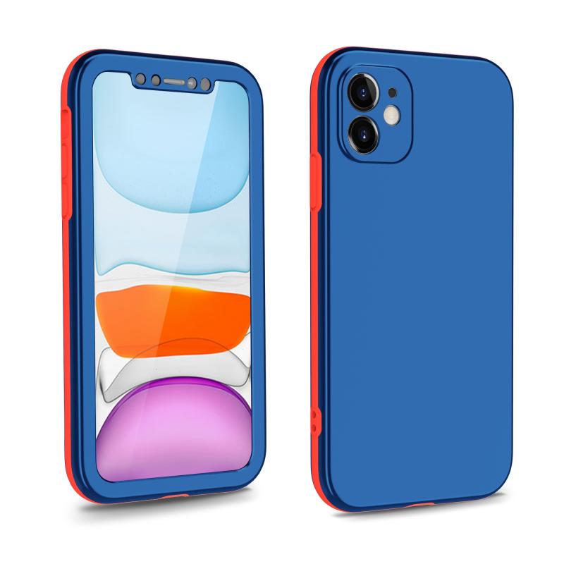 For iPhone 11 Two Color Full Protective 3-in-1 Phone Case(Blue)