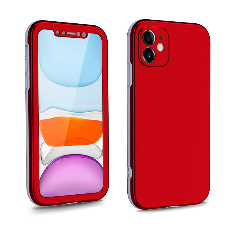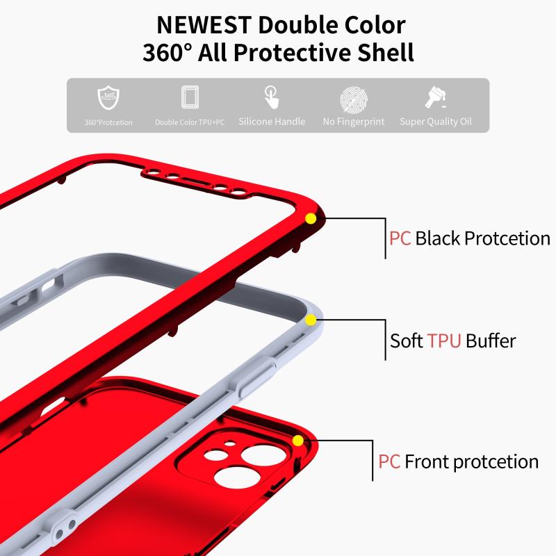 For iPhone 11 Two Color Full Protective 3-in-1 Phone Case(Red)
