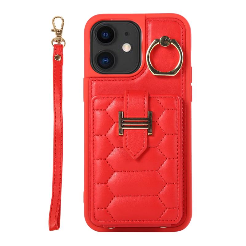For iPhone 11 Vertical Card Bag Ring Holder Phone Case with Dual Lanyard(Red)