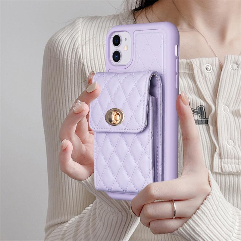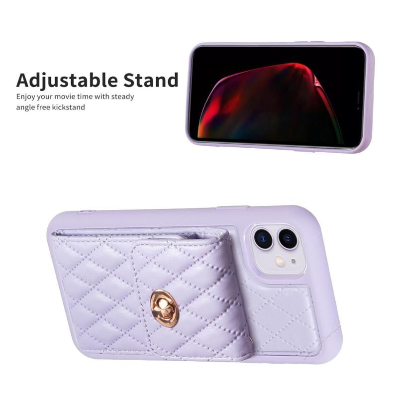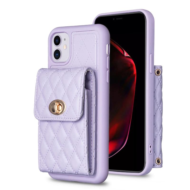 For iPhone 11 Vertical Metal Buckle Wallet Rhombic Leather Phone Case(Purple)