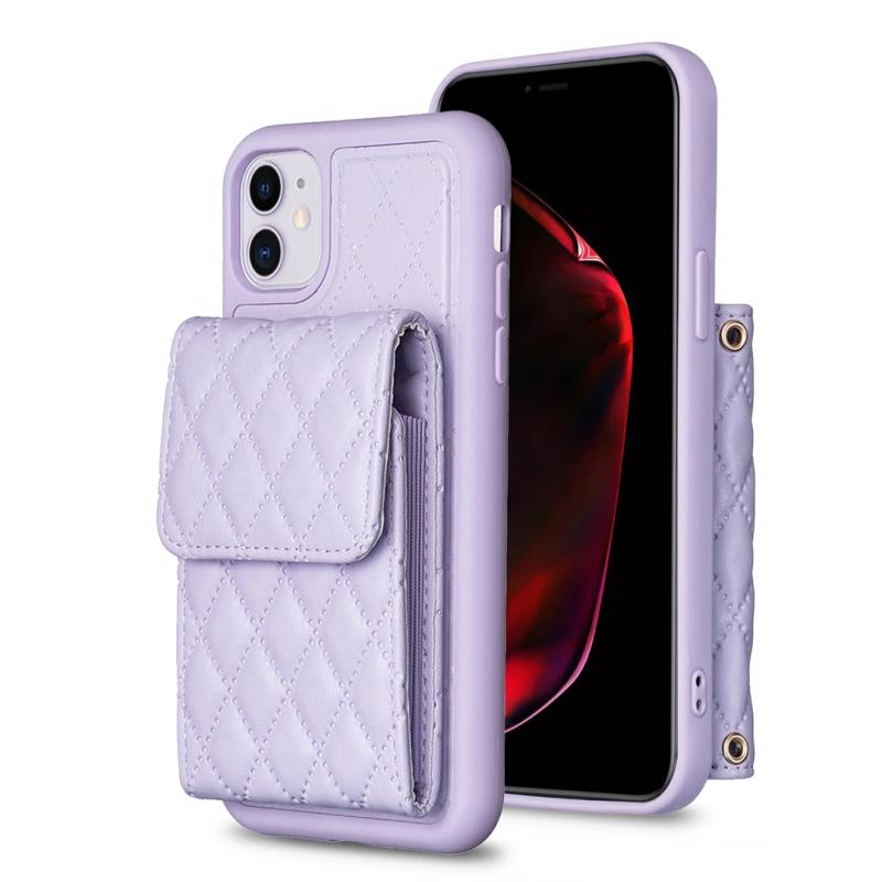 For iPhone 11 Vertical Wallet Rhombic Leather Phone Case(Purple)