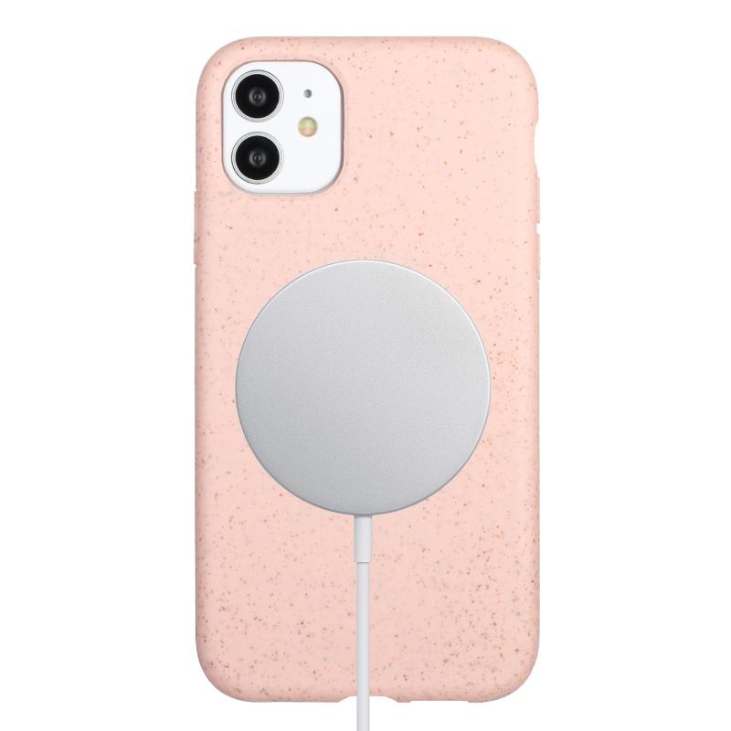 For iPhone 11 Wheat MagSafe Magnetic Straw Material + TPU Phone Case(Pink)