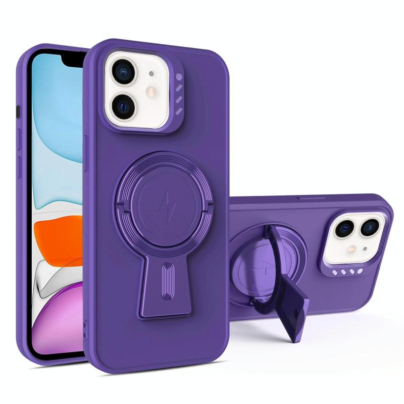 For iPhone 11 Y-shape Holder MagSafe Rugged Shockproof Phone Case(Deep Purple)