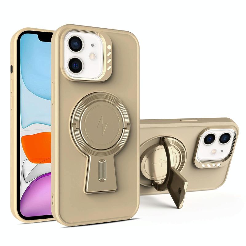 For iPhone 11 Y-shape Holder MagSafe Rugged Shockproof Phone Case(Desert Gold)