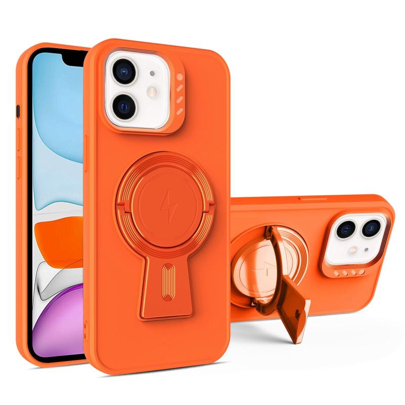For iPhone 11 Y-shape Holder MagSafe Rugged Shockproof Phone Case(Orange)