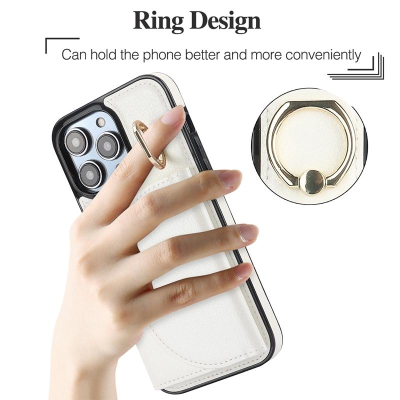 For iPhone 11 YM007 Ring Holder Card Bag Skin Feel Phone Case(White)