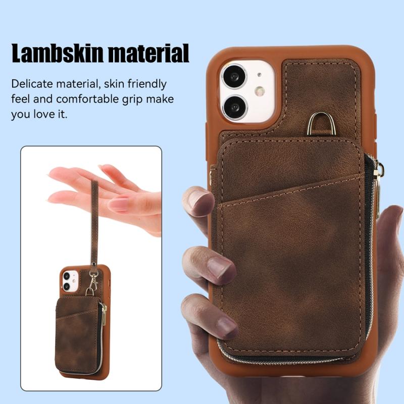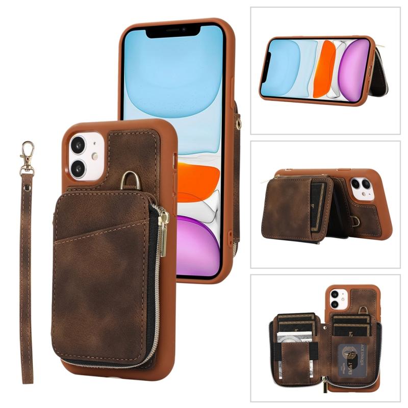 For iPhone 11 Zipper Card Bag Back Cover Phone Case(Brown)