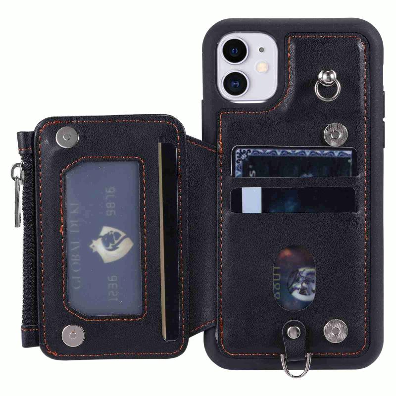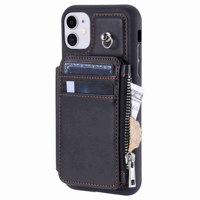 For iPhone 11 Zipper Card Slots RFID Phone Case(Black)