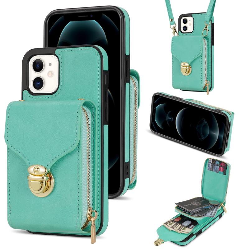 For iPhone 11 Zipper Hardware Card Wallet Phone Case(Mint Green)