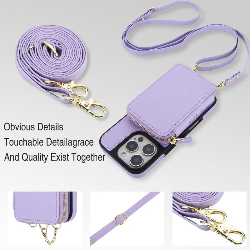 For iPhone 12 / 12 Pro AwQuer 2 in 1 Crossbody Zipper Wallet Leather Back Phone Case(Light Purple) (Awquer)