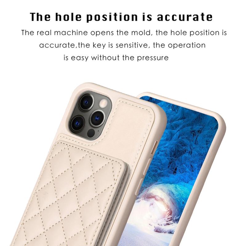 For iPhone 12 / 12 Pro BF25 Square Plaid Card Bag Holder Phone Case(Beige)
