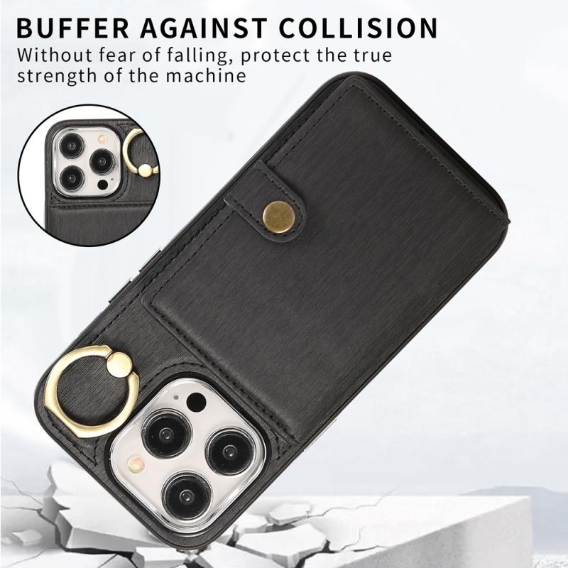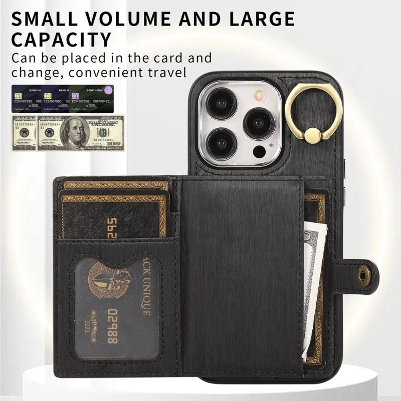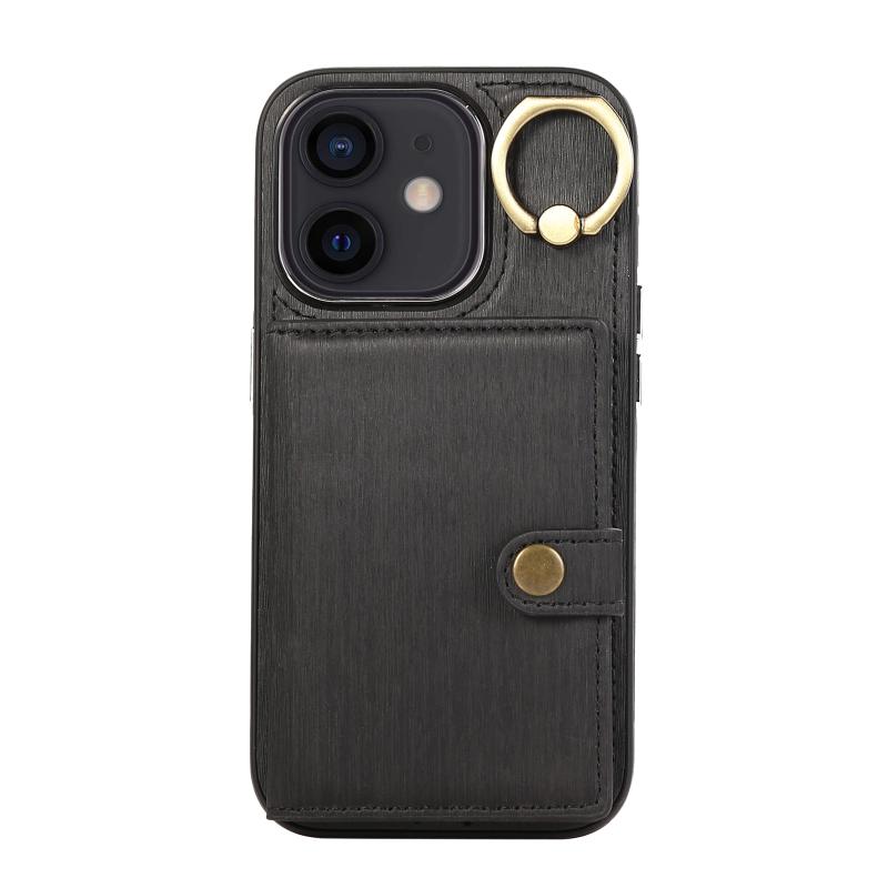 For iPhone 12 / 12 Pro Brushed Texture Wallet Ring Holder Phone Case(Black)