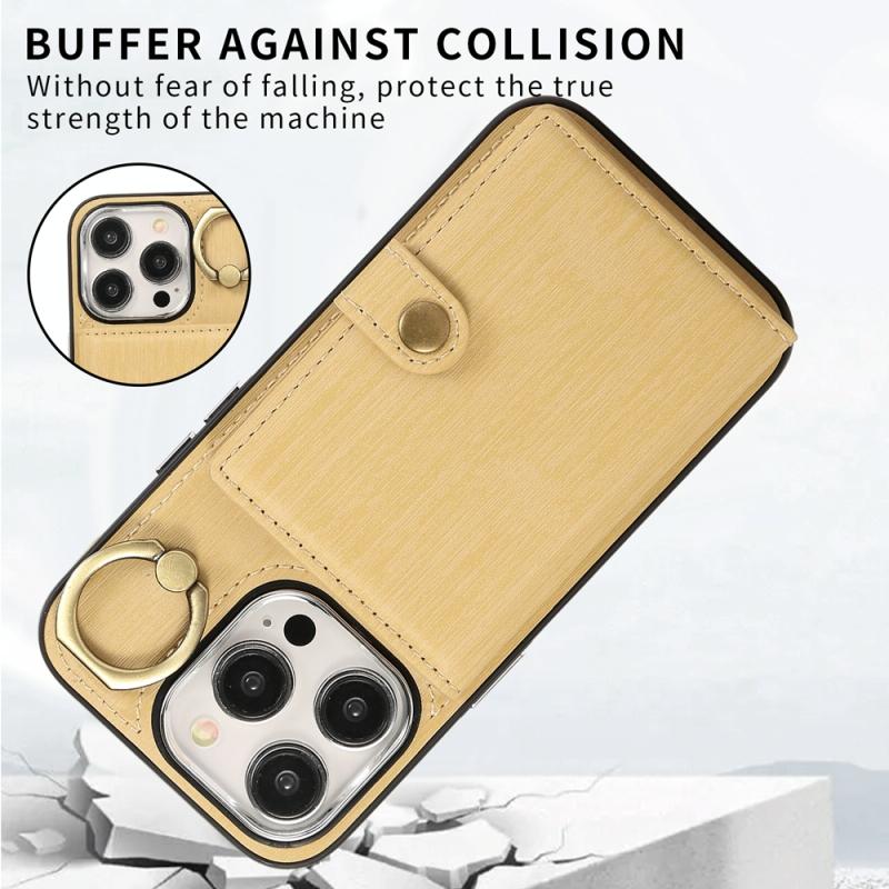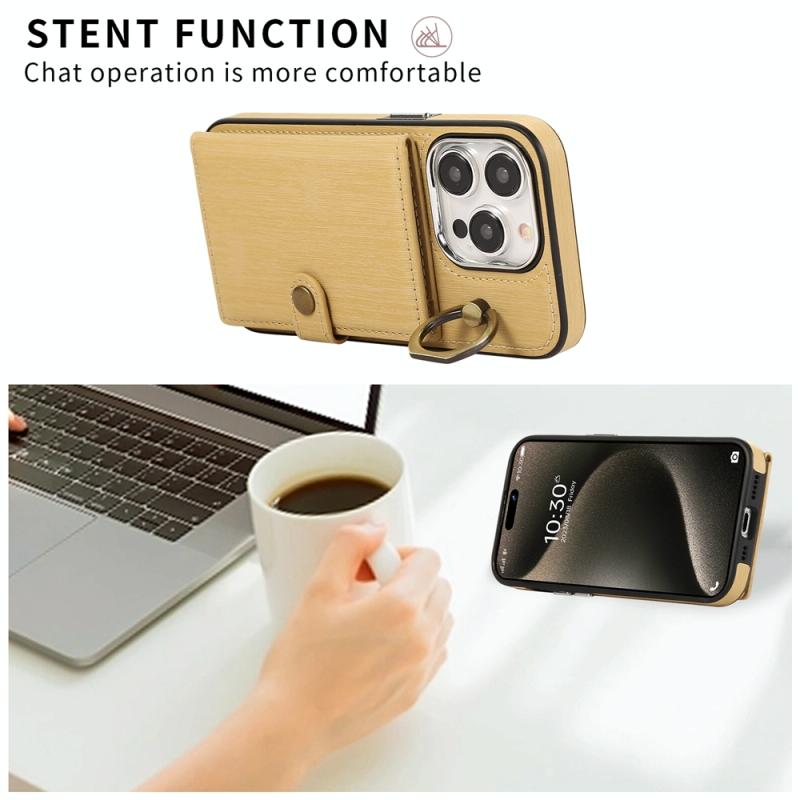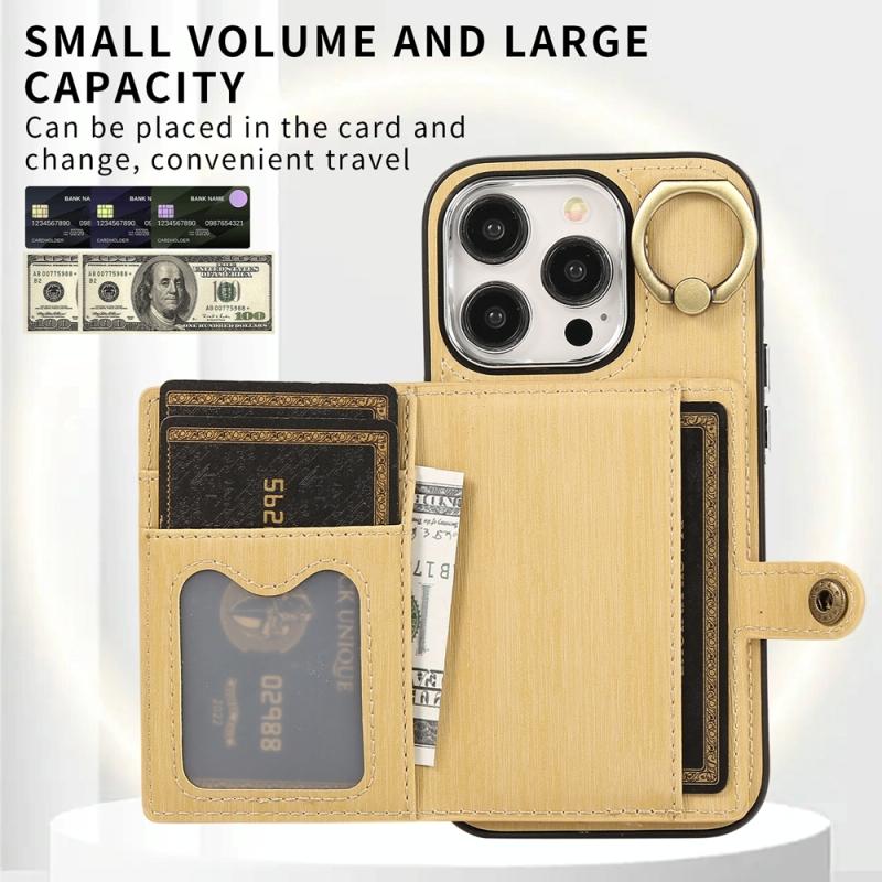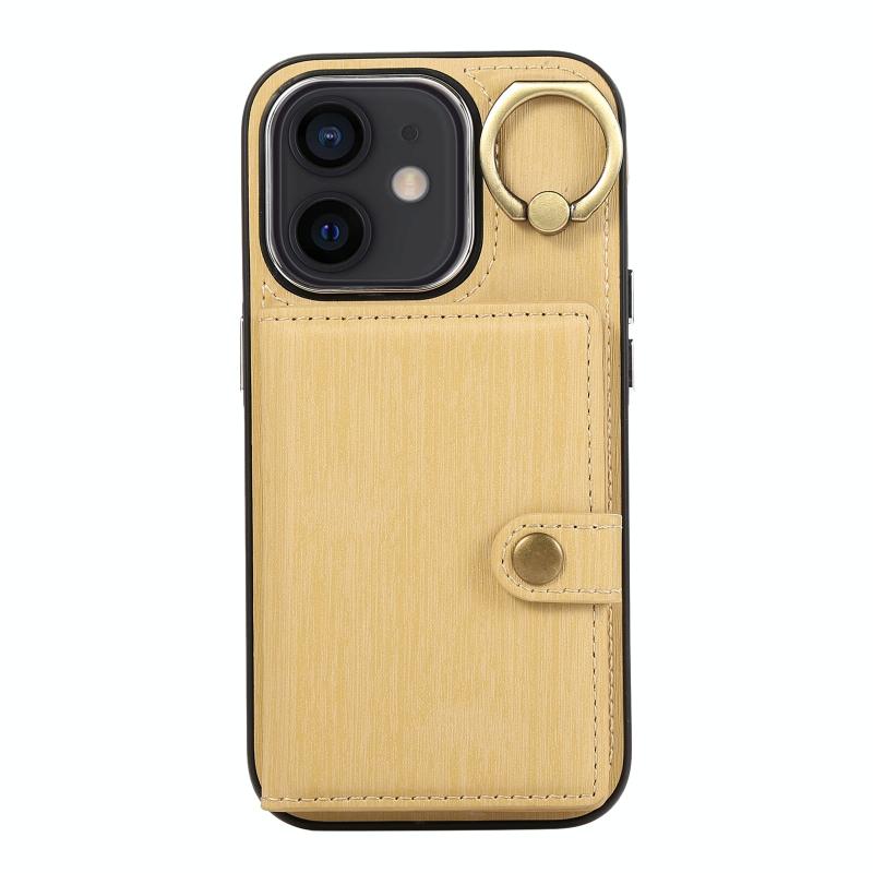For iPhone 12 / 12 Pro Brushed Texture Wallet Ring Holder Phone Case(Yellow)