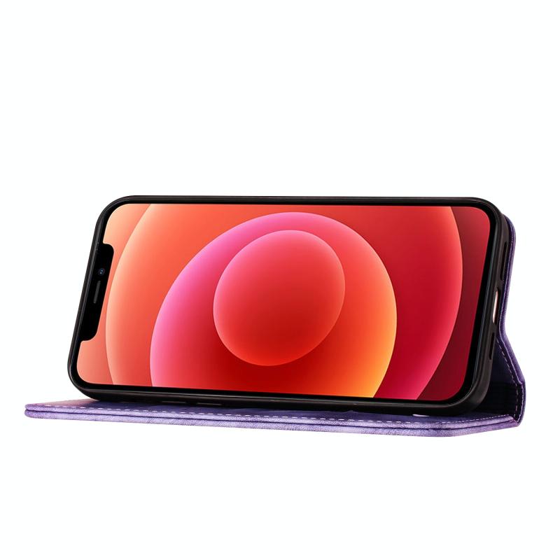 For iPhone 12 / 12 Pro Butterfly Cat Embossing Flip Leather Phone Case(Purple)
