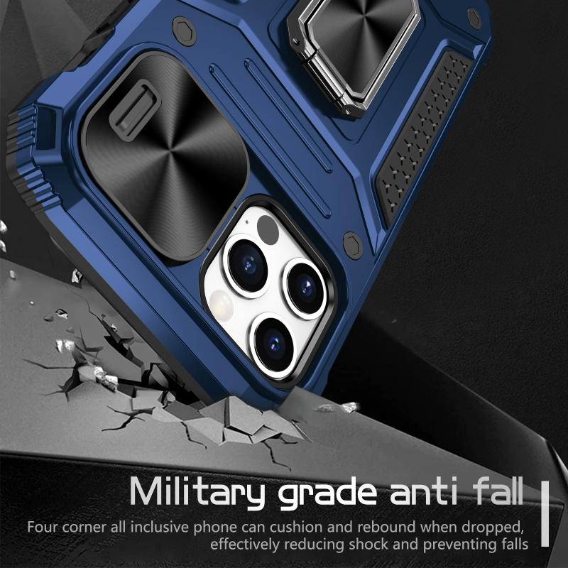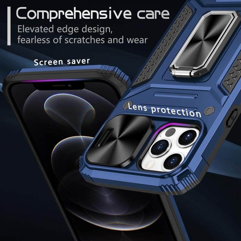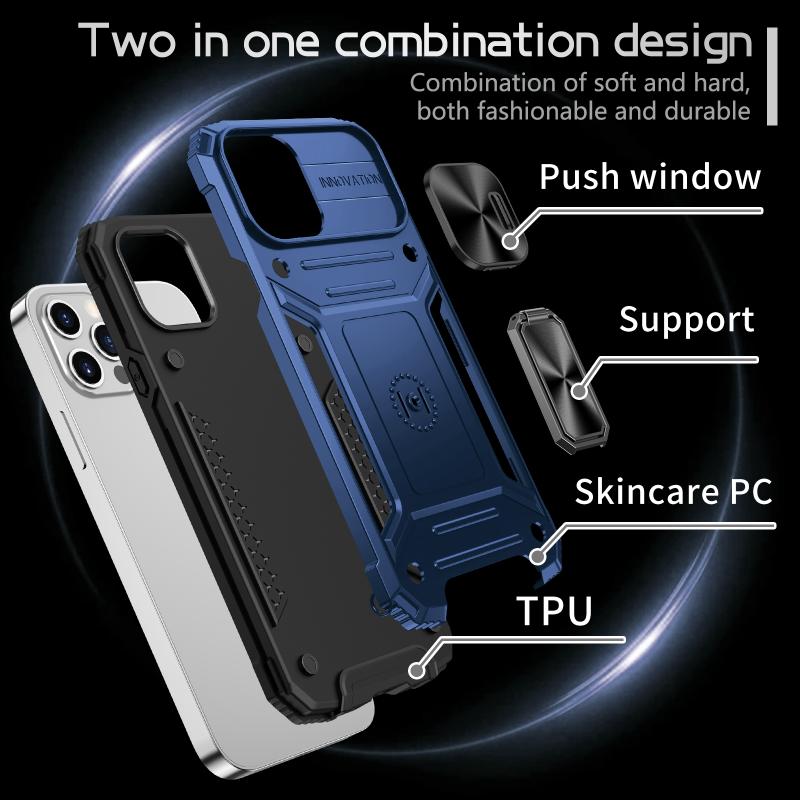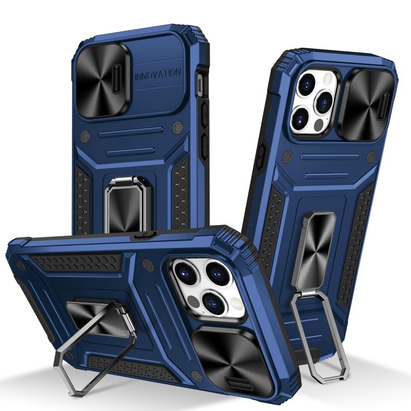For iPhone 12 / 12 Pro Camshield Robot TPU Hybrid PC Phone Case(Blue)