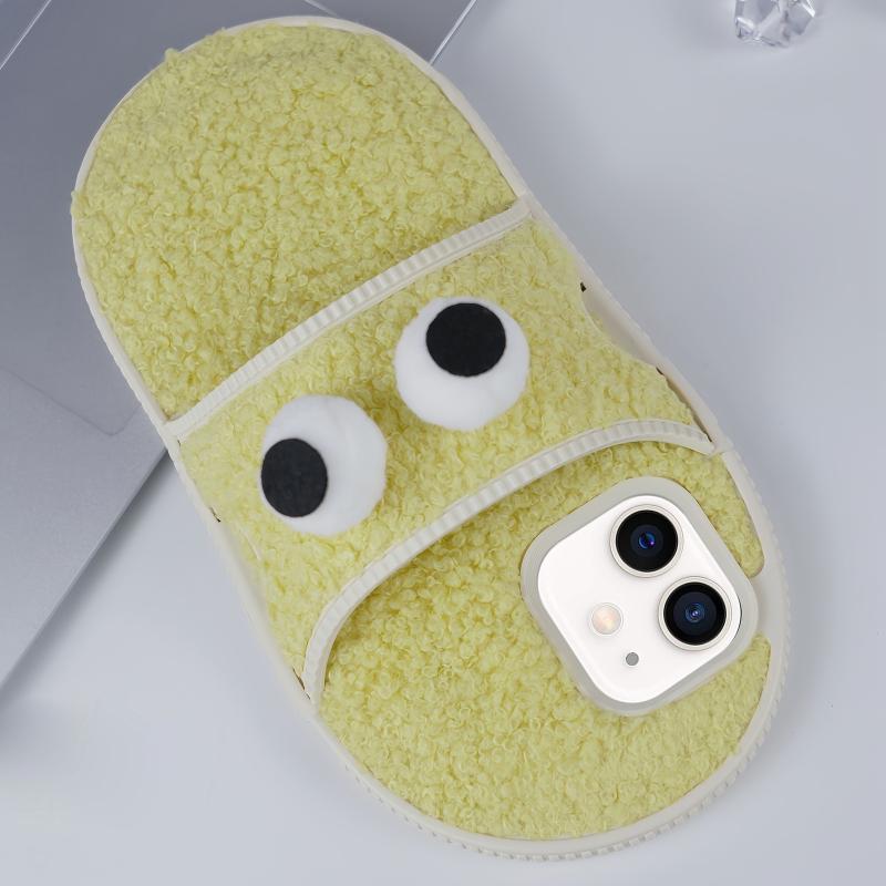 For iPhone 12 / 12 Pro Creative Plush Big Eyes Slipper Design TPU Phone Case(Light Yellow)