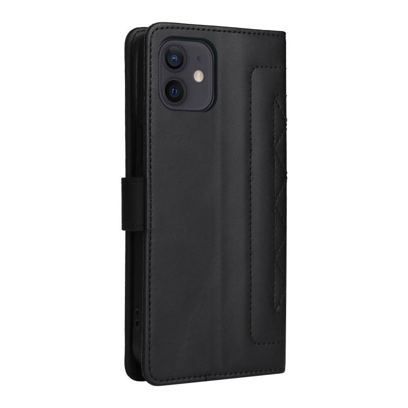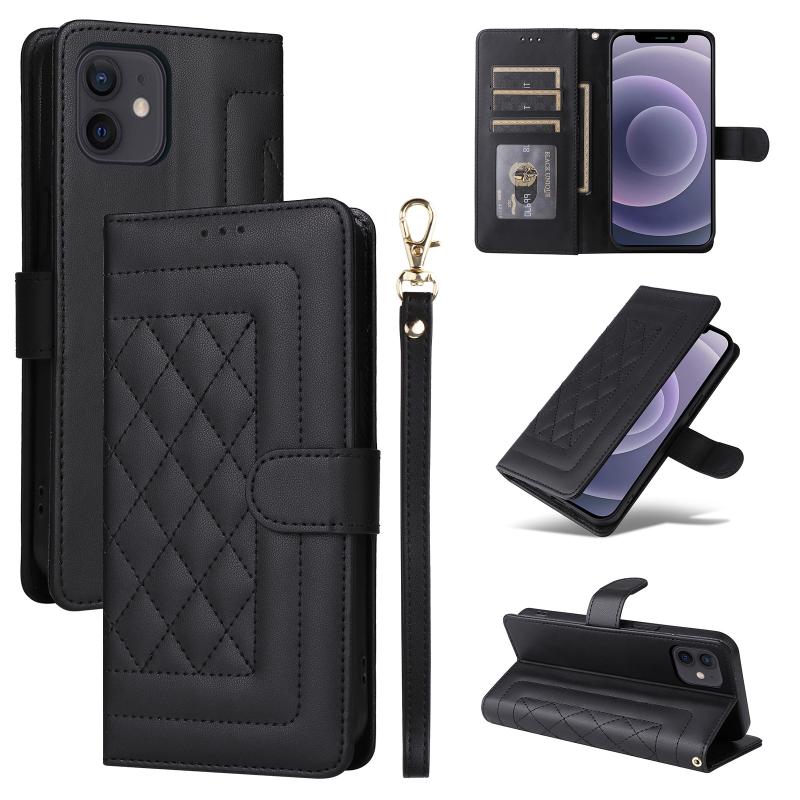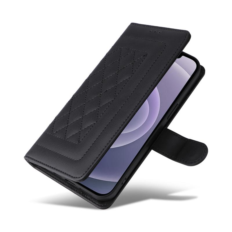 For iPhone 12 / 12 Pro Diamond Lattice Leather Flip Phone Case(Black)