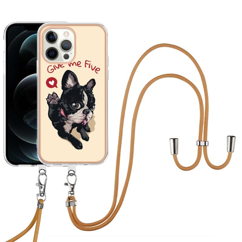 For iPhone 12 / 12 Pro Electroplating Dual-side IMD Phone Case with Lanyard(Lucky Dog)