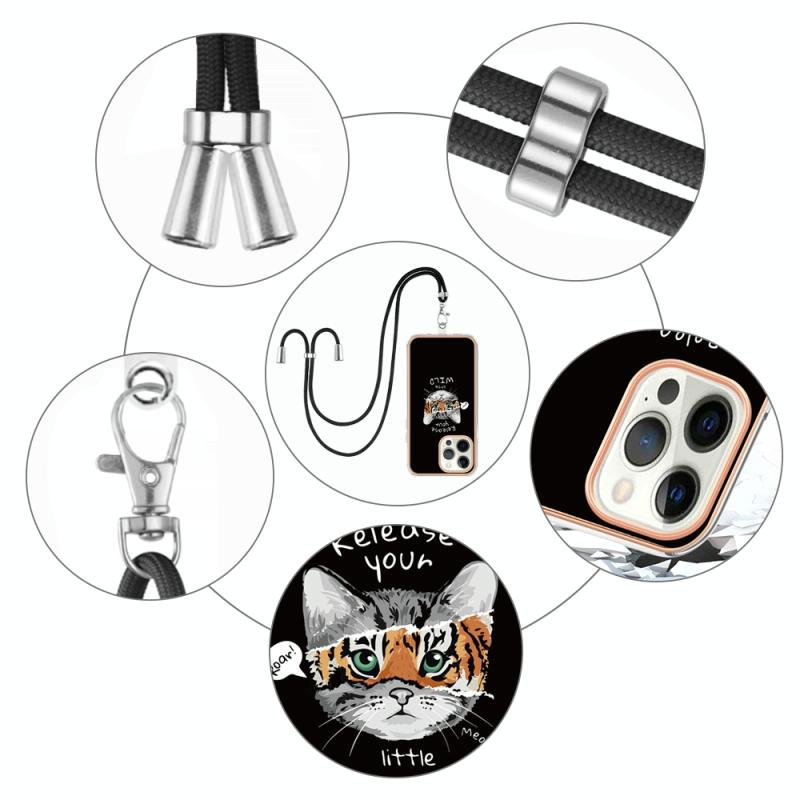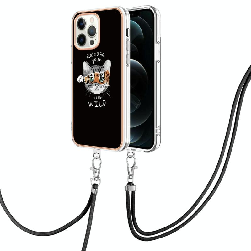 For iPhone 12 / 12 Pro Electroplating Dual-side IMD Phone Case with Lanyard(Natural Growth)