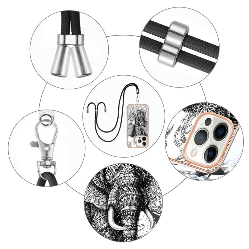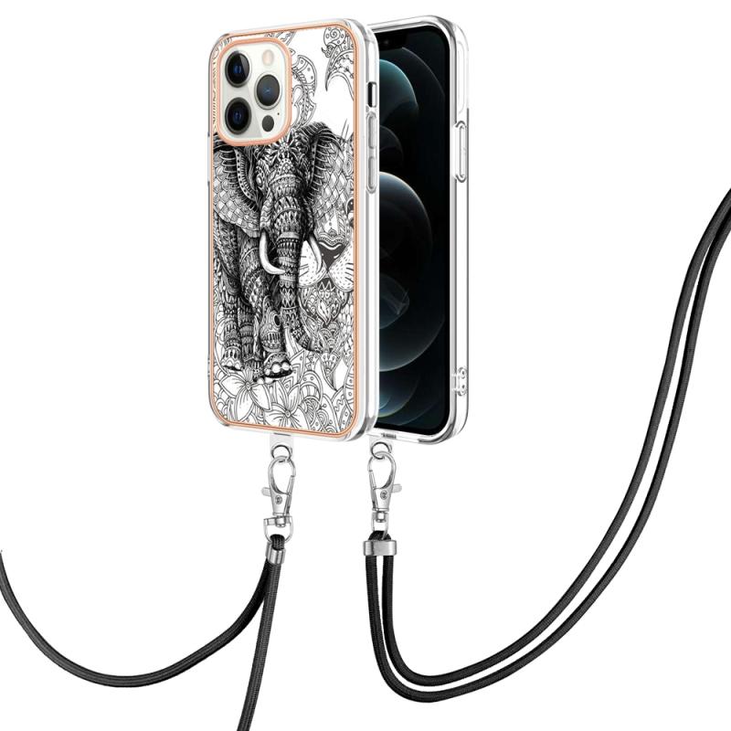 For iPhone 12 / 12 Pro Electroplating Dual-side IMD Phone Case with Lanyard(Totem Elephant)