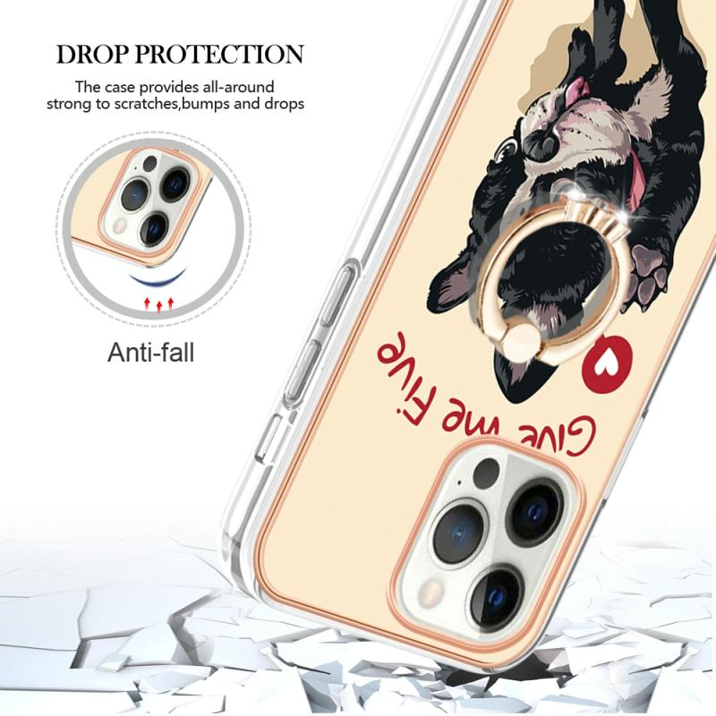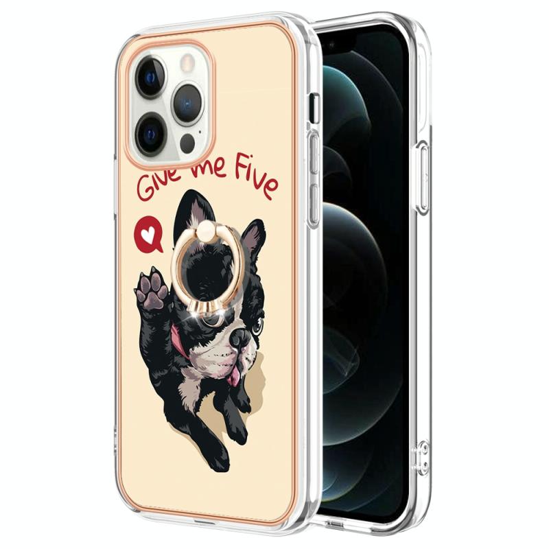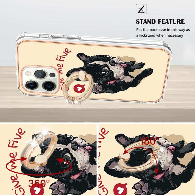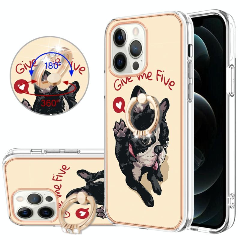 For iPhone 12 / 12 Pro Electroplating Dual-side IMD Phone Case with Ring Holder(Lucky Dog)