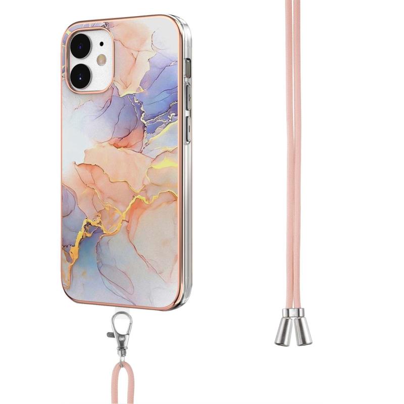 For iPhone 12 / 12 Pro Electroplating Pattern IMD TPU Shockproof Case with Neck Lanyard(Milky Way White Marble)