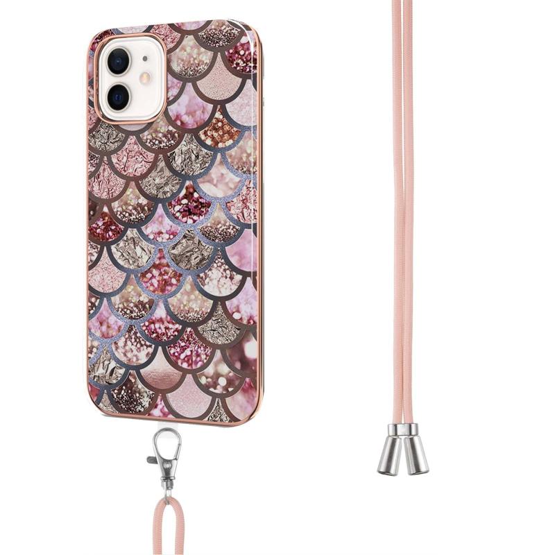 For iPhone 12 / 12 Pro Electroplating Pattern IMD TPU Shockproof Case with Neck Lanyard(Pink Scales)