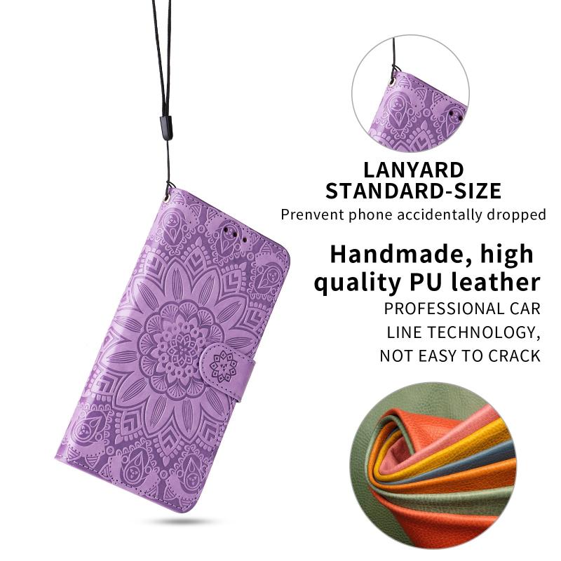 For iPhone 12 / 12 Pro Embossed Sunflower Leather Phone Case(Purple)