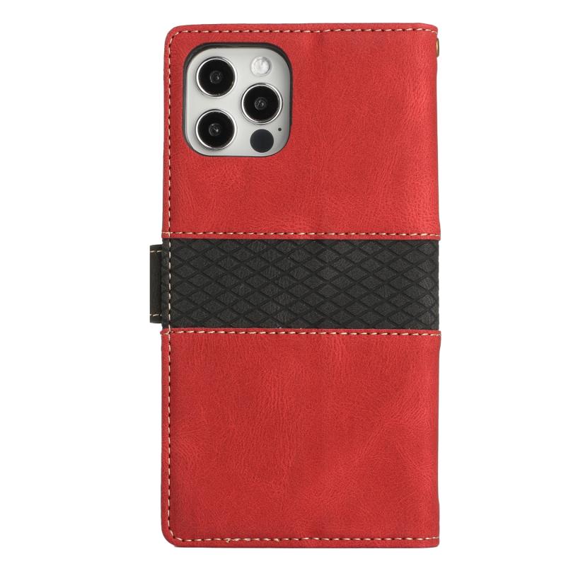 For iPhone 12 / 12 Pro Grid Stitching Leather Phone Case with Lanyard(Red)