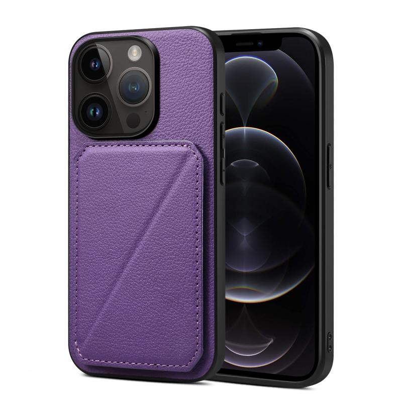 For iPhone 12 / 12 Pro Imitation Calfskin Leather Back Phone Case with Holder(Purple)