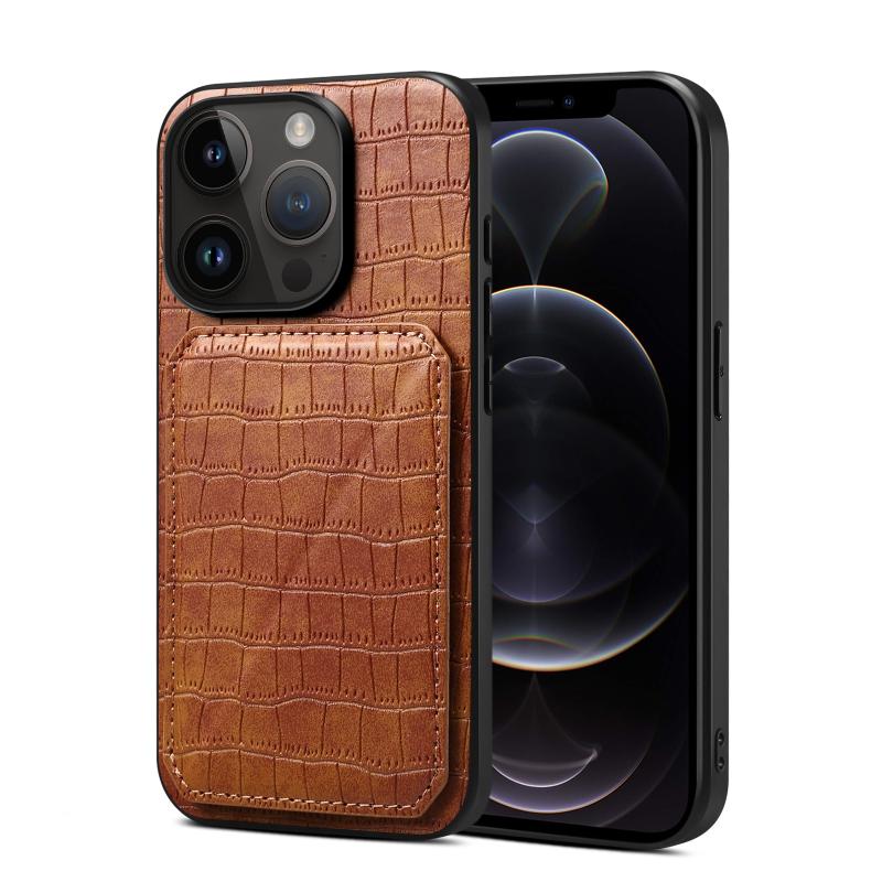 For iPhone 12 / 12 Pro Imitation Crocodile Leather Back Phone Case with Holder(Brown)