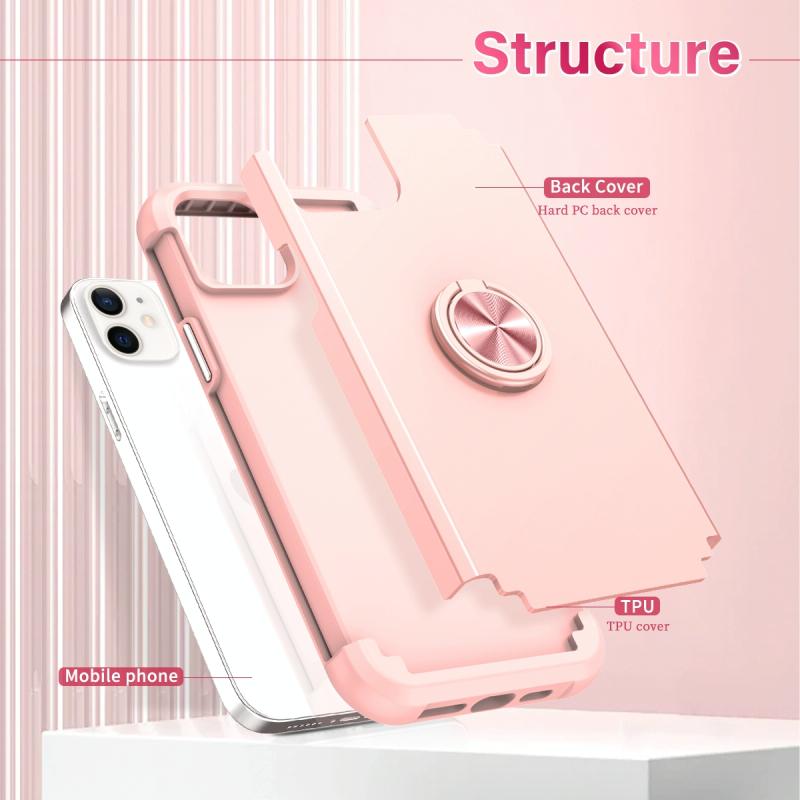 For iPhone 12 / 12 Pro L2 Rotating Ring Holder Magnetic Phone Case(Rose Gold)