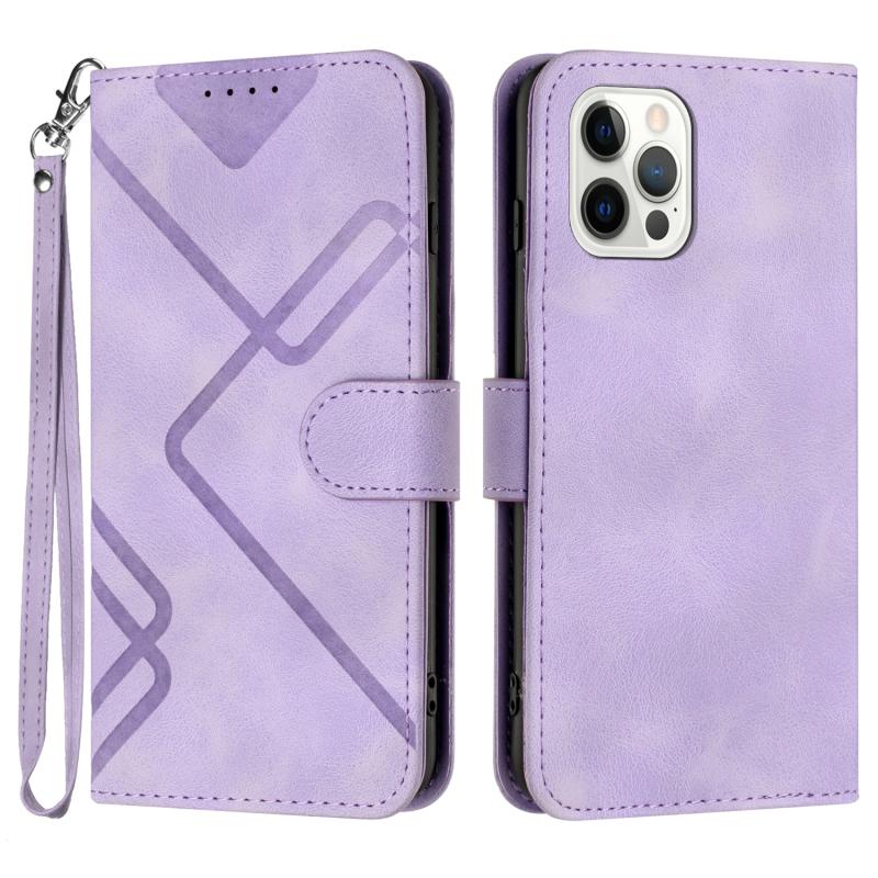 For iPhone 12 / 12 Pro Line Pattern Skin Feel Leather Phone Case(Light Purple)