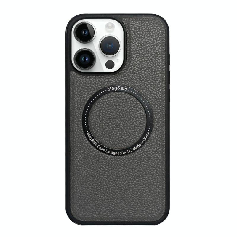 For iPhone 12 / 12 Pro Litchi Texture PU MagSafe Back Cover Phone Case(Grey)