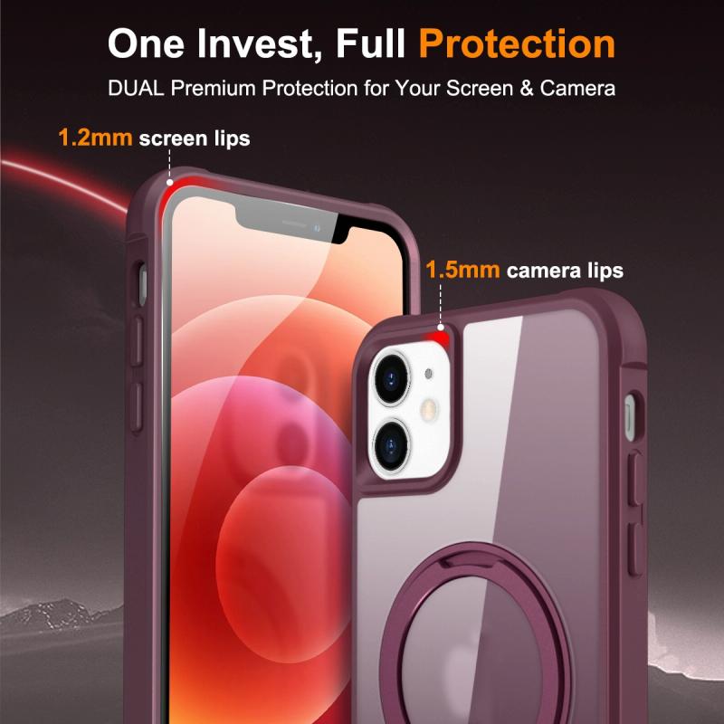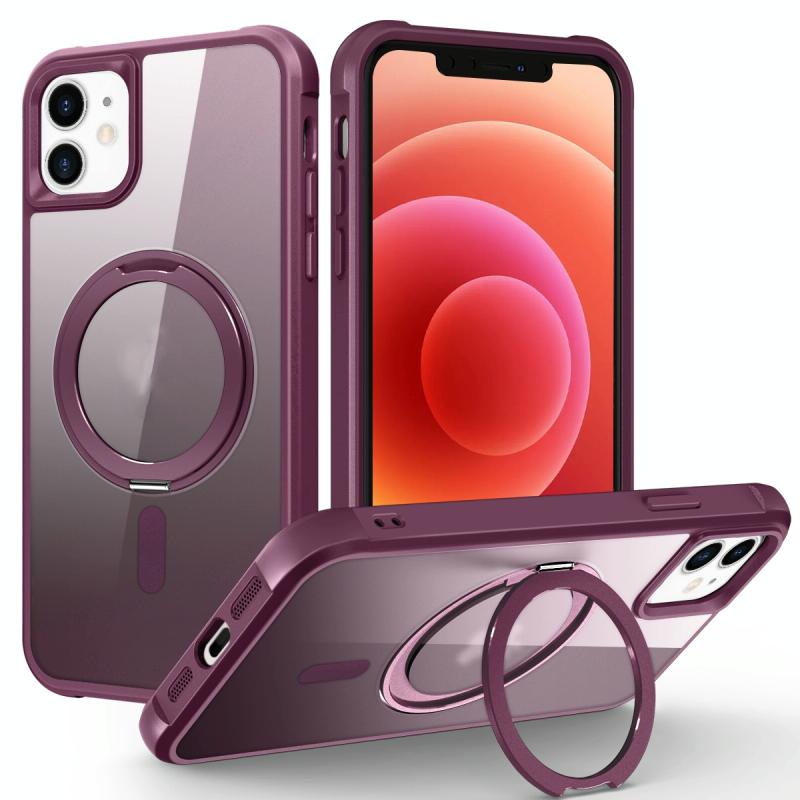 For iPhone 12 / 12 Pro MagSafe Magnetic Rotating Holder Phone Case(Wine Red)